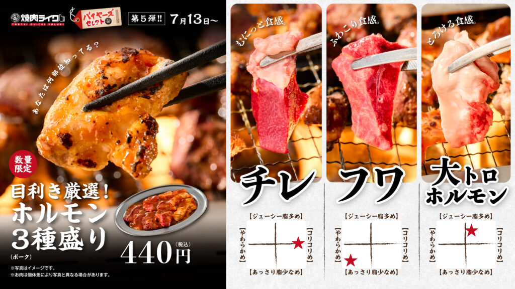 第5弾:2025年7月13日より期間限定で販売「ホルモン3種盛り」