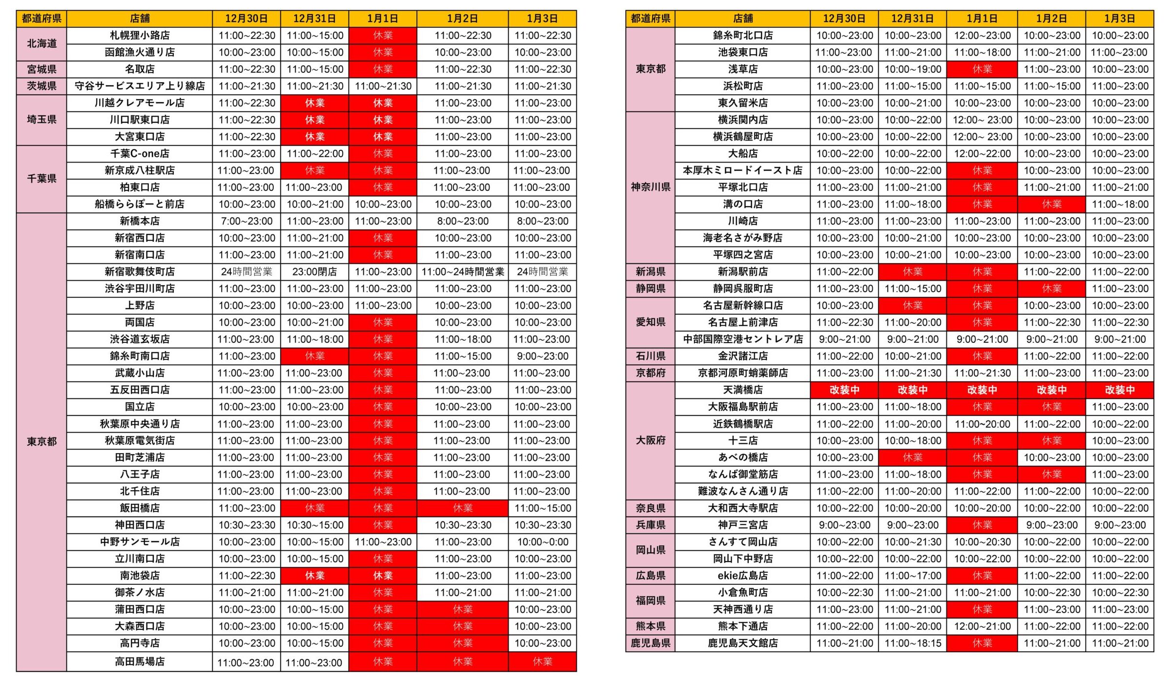 年末年始の営業時間についてのお知らせ 2025年12月21日 コメントはまだありません いつも焼肉ライクをご利用いただき、 誠にありがとうございます。 年末年始の営業時間についてご案内いたします。 期間中にご来店の際は、各店舗で営業時間が異なりますので、 下記ご確認の上ご来店くださいますようお願い申し上げます。 ※年末年始の営業時間につきましては、予告なく変更する場合がございますのでご了承ください。 皆様のご来店、心よりお待ちしております。 お知らせ
