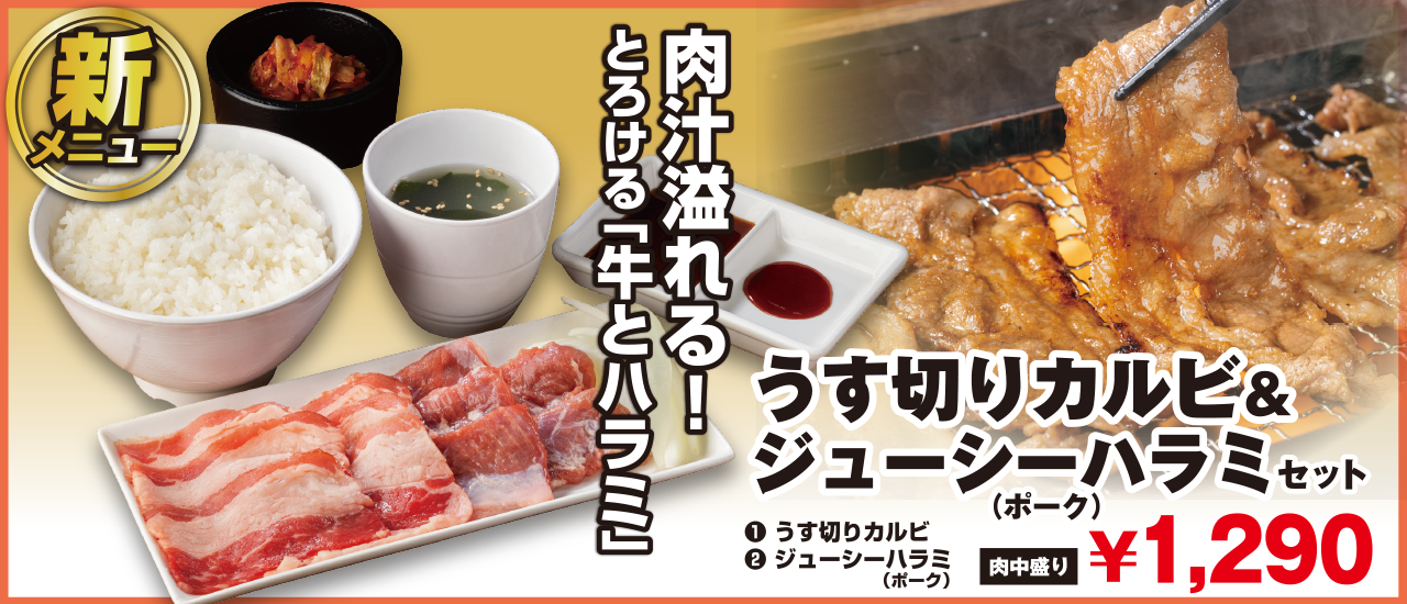 うす切りカルビ&ジューシーハラミセット 1,173円(税込1,290円)