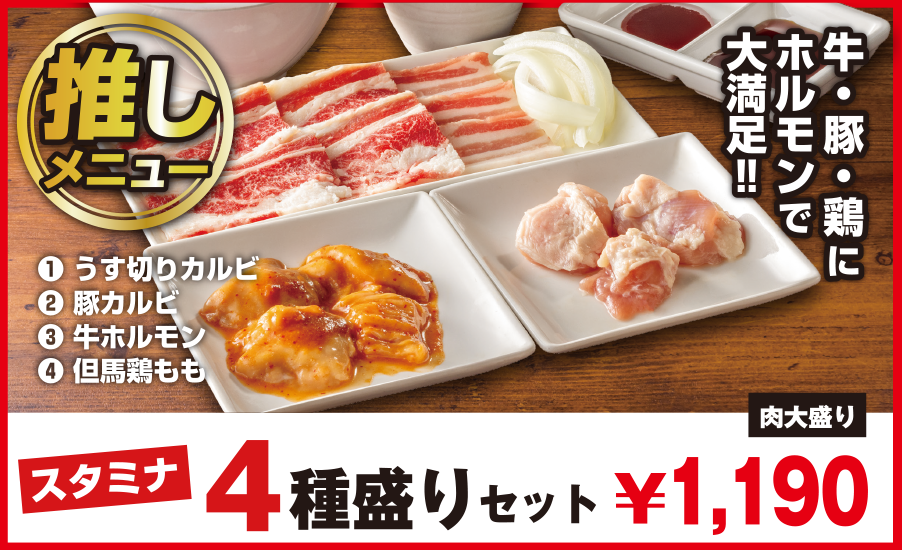 スタミナ4種盛りセット 1,082円(税込1,190円)