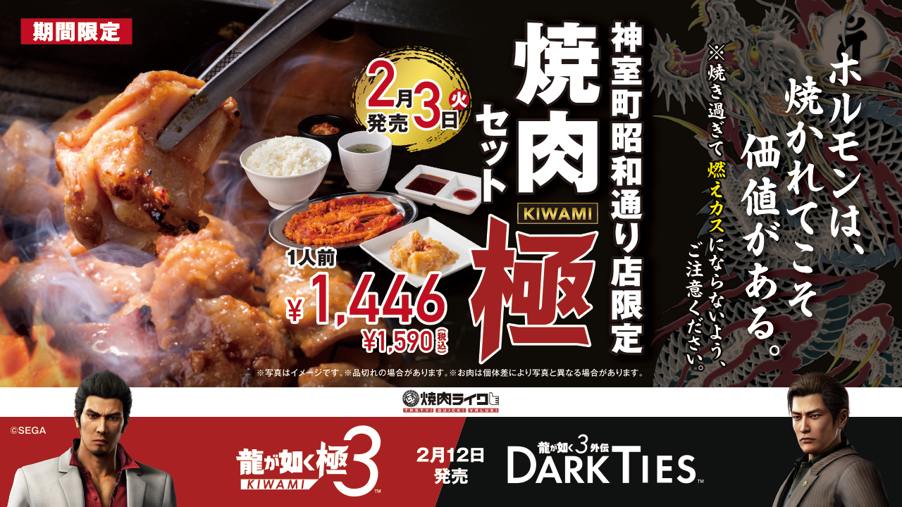 『龍が如く』シリーズ内で登場した“ホルモン”に着想を得た店舗限定メニューを展開します。
