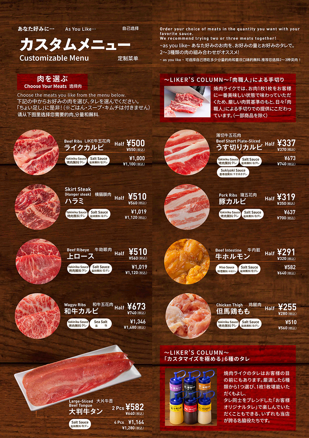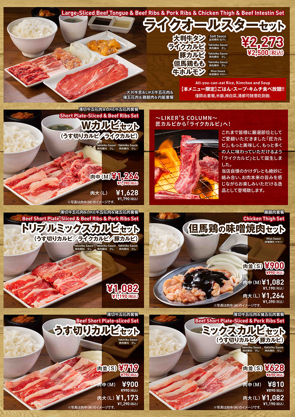 焼肉ライク溝の口店メニューのご案内
