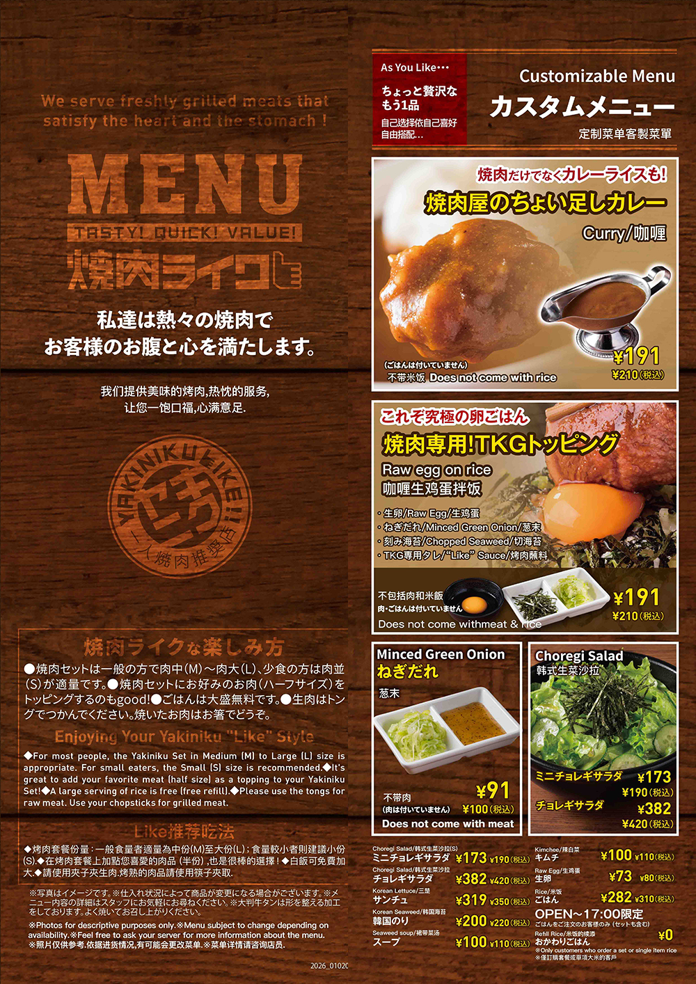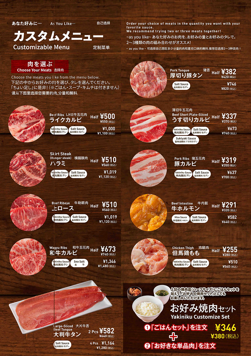 焼肉ライクメニュー | 焼肉ライク 1人1台の無煙ロースターで好きなだけ楽しめる一人焼肉店 焼肉ライク